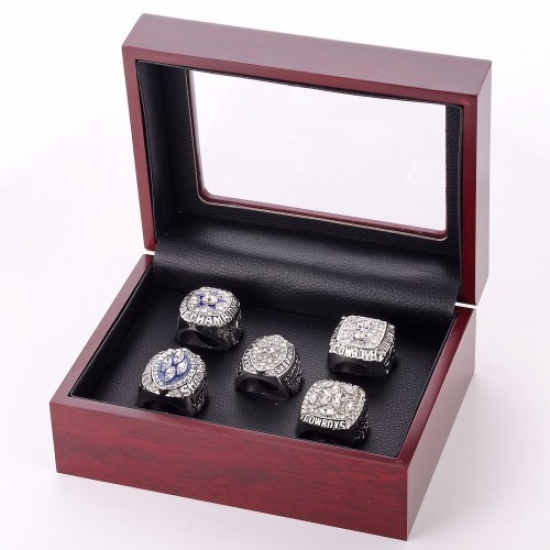 >5pcs NFL Super Bowl Cowboys Ring Wooden Box Set Jewelry - No. 12