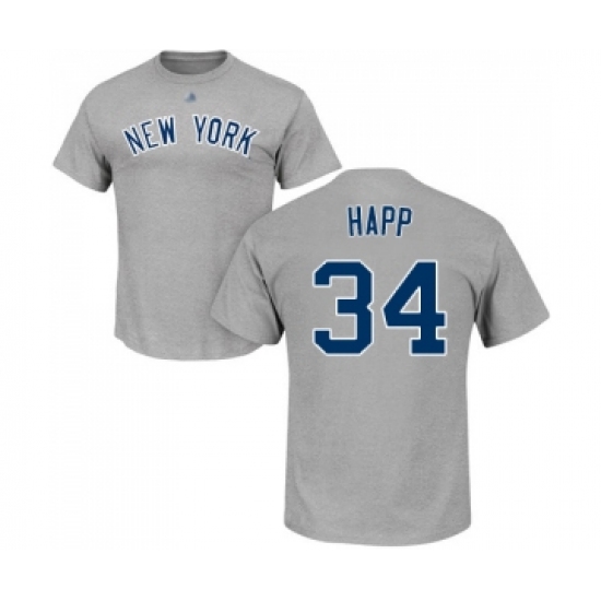 Baseball New York Yankees #34 J.A. Happ Gray Name & Number T-Shirt