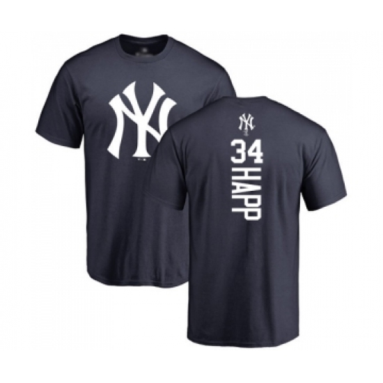 >Baseball New York Yankees #34 J.A. Happ Navy Blue Backer T-Shirt