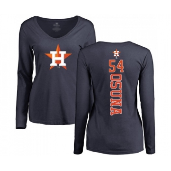 >Baseball Women's Houston Astros #54 Roberto Osuna Navy Blue Backer Long Sleeve T-Shirt