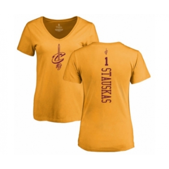 Basketball Women's Cleveland Cavaliers #1 Nik Stauskas Gold One Color Backer Slim-Fit V-Neck T-Shirt