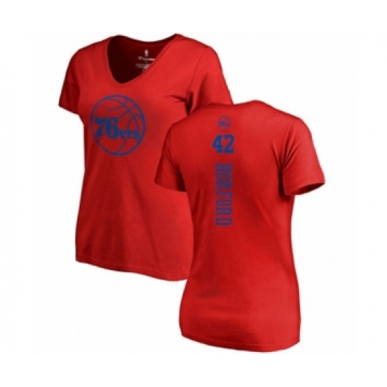 >Basketball Women's Philadelphia 76ers #42 Al Horford Red One Color Backer Slim-Fit V-Neck T-Shirt