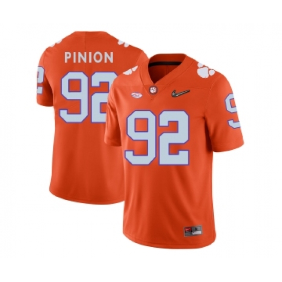 >Clemson Tigers 92 Bradley Pinion Orange With Diamond Logo College Football Jersey