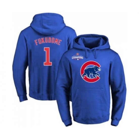 >Cubs #1 Kosuke Fukudome Blue 2016 World Series Champions Primary Logo Pullover MLB Hoodie