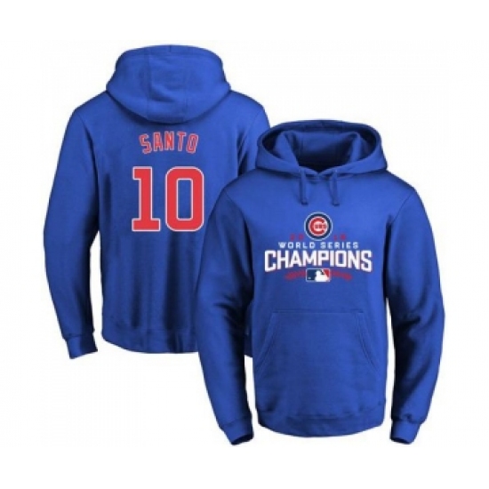 >Cubs #10 Ron Santo Blue 2016 World Series Champions Pullover MLB Hoodie