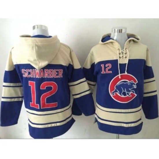 >Cubs #12 Kyle Schwarber Blue Sawyer Hooded Sweatshirt MLB Hoodie