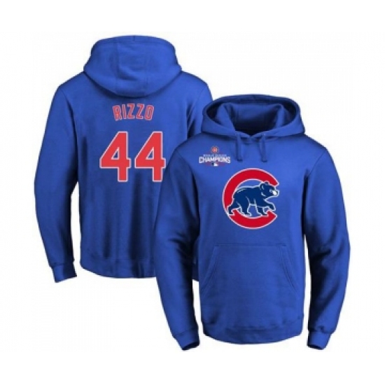 >Cubs #44 Anthony Rizzo Blue 2016 World Series Champions Primary Logo Pullover MLB Hoodie
