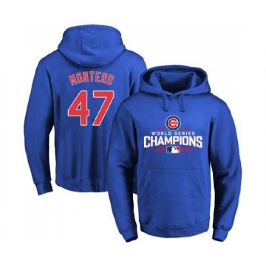Cubs #47 Miguel Montero Blue 2016 World Series Champions Pullover MLB Hoodie