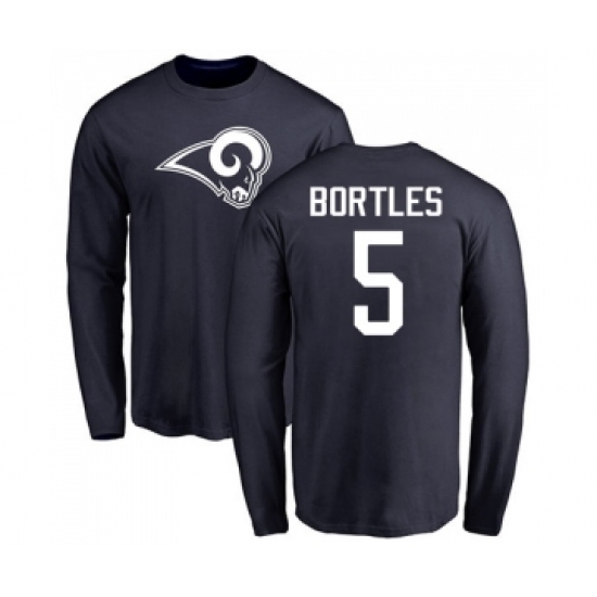 Football Los Angeles Rams #5 Blake Bortles Navy Blue Name & Number Logo Long Sleeve T-Shirt