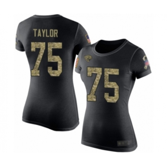 Football Women's Jacksonville Jaguars #75 Jawaan Taylor Black Camo Salute to Service T-Shirt