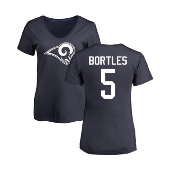 Football Women's Los Angeles Rams #5 Blake Bortles Navy Blue Name & Number Logo Slim Fit T-Shirt