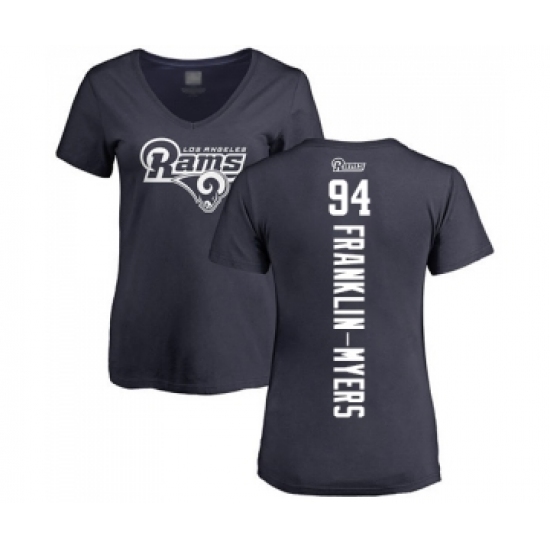 >Football Women's Los Angeles Rams #94 John Franklin-Myers Navy Blue Backer T-Shirt