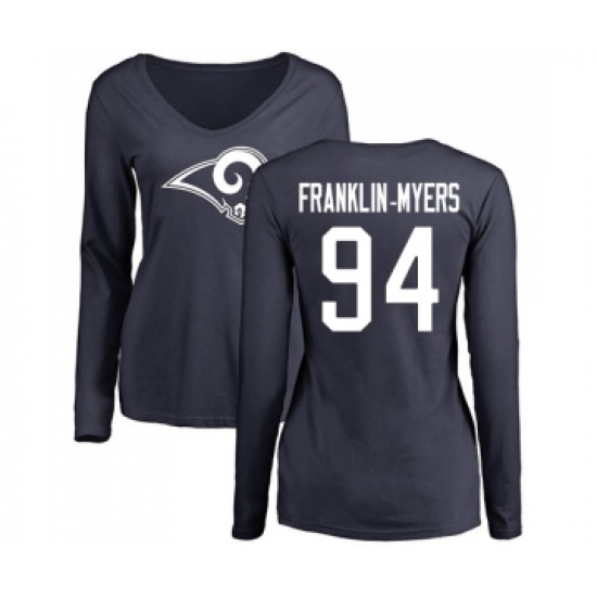 >Football Women's Los Angeles Rams #94 John Franklin-Myers Navy Blue Name & Number Logo Slim Fit Long Sleeve T-Shirt