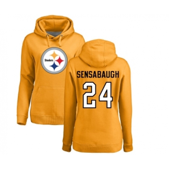 Football Women's Pittsburgh Steelers #24 Coty Sensabaugh Gold Name & Number Logo Pullover Hoodie