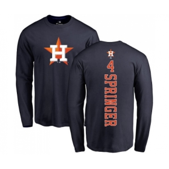 MLB Nike Houston Astros #4 George Springer Navy Blue Backer Long Sleeve T-Shirt