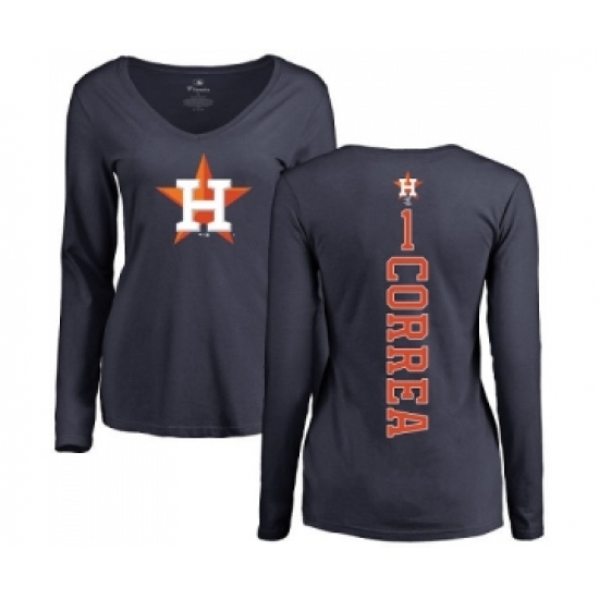 >MLB Women's Nike Houston Astros #1 Carlos Correa Navy Blue Backer Long Sleeve T-Shirt