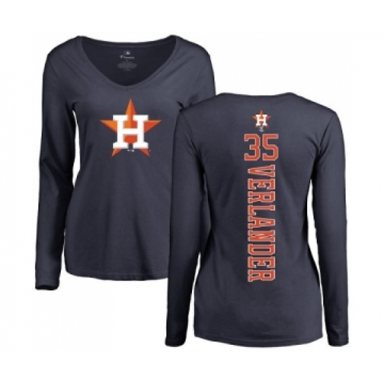 MLB Women's Nike Houston Astros #35 Justin Verlander Navy Blue Backer Long Sleeve T-Shirt