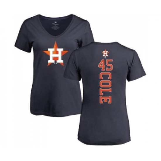 MLB Women's Nike Houston Astros #45 Gerrit Cole Navy Blue Backer T-Shirt
