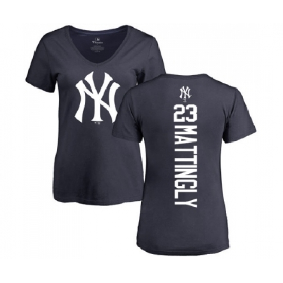 MLB Women's Nike New York Yankees #23 Don Mattingly Navy Blue Backer T-Shirt