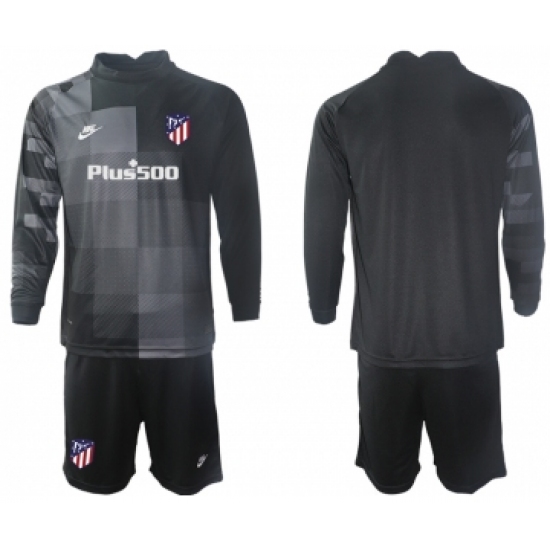 >Men 2021-2022 Club Atletico Madrid black goalkeeper Long Sleeve blank Soccer Jersey
