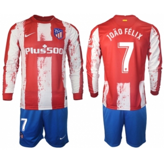 >Men 2021-2022 Club Atletico Madrid home red Long Sleeve 7 Soccer Jersey