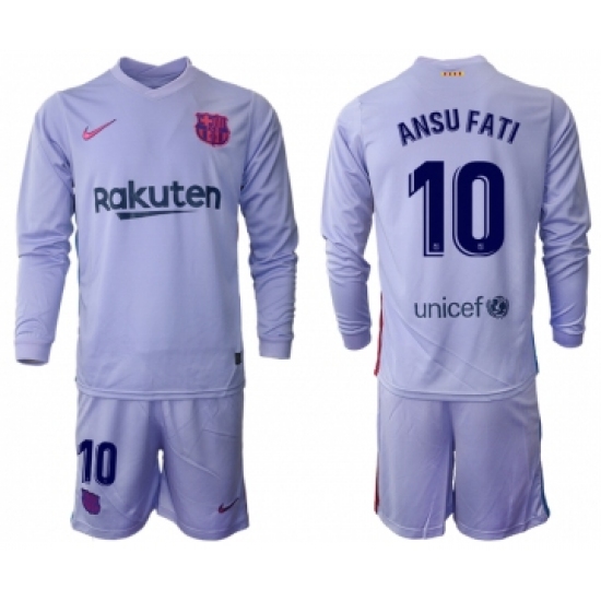 >Men 2021-2022 Club Barcelona Second away purple Long Sleeve 10 Soccer Jerseys