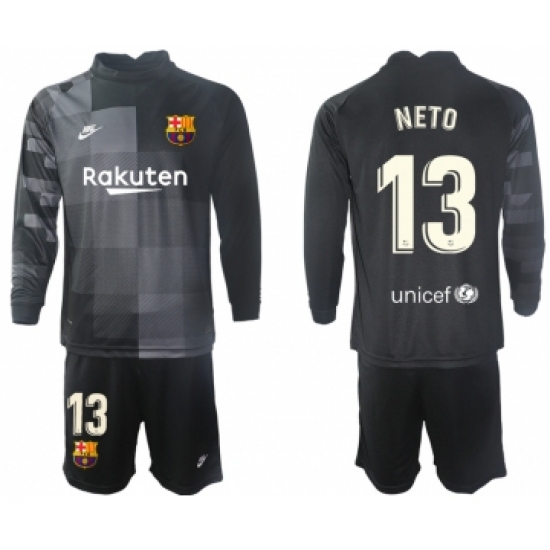 >Men 2021-2022 Club Barcelona black goalkeeper Long Sleeve 13 Soccer Jersey