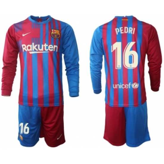 >Men 2021-2022 Club Barcelona home red blue Long Sleeve 16 Nike Soccer Jerseys