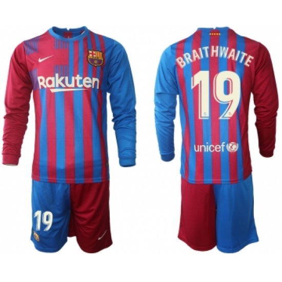>Men 2021-2022 Club Barcelona home red blue Long Sleeve 19 Nike Soccer Jersey