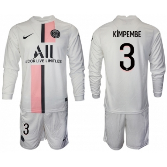 >Men 2021-2022 Club Paris St German away white Long Sleeve 3 Soccer Jersey