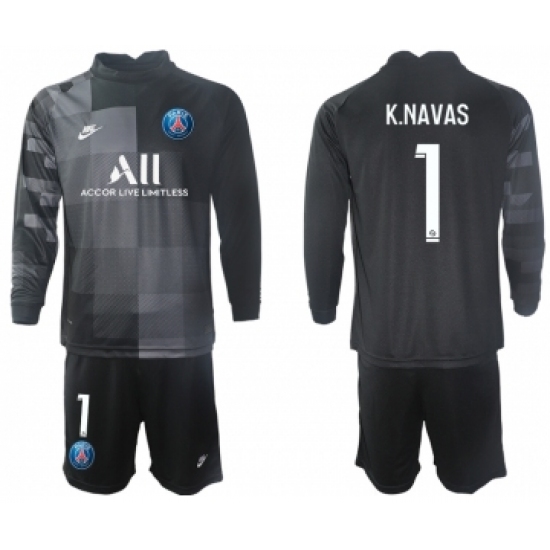 >Men 2021-2022 Club Paris St German black goalkeeper Long Sleeve 1 Soccer Jersey