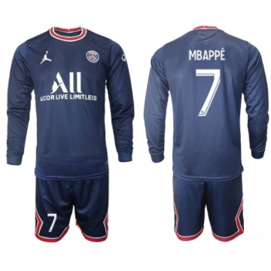 >Men 2021-2022 Club Paris St German home blue Long Sleeve 7 Soccer Jersey