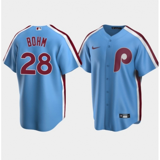 >Men Philadelphia Phillies #28 Alec Bohm Light Blue Cooperstown Collection Road