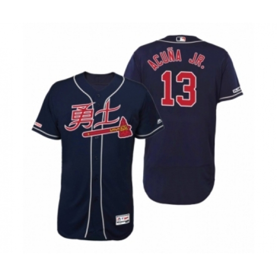 Men's 2019 Asian Heritage Month Atlanta Braves #13 Ronald Acuna Jr. Navy Chinese Flex Base Jersey