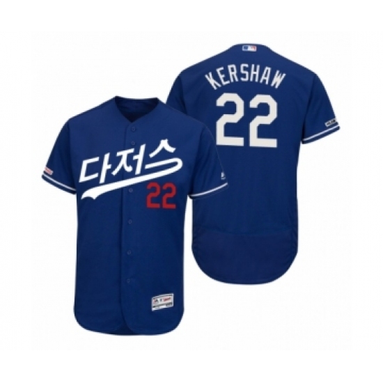 Men's 2019 Asian Heritage Month Los Angeles Dodgers #22 Clayton Kershaw Royal Korean Flex Base Jersey