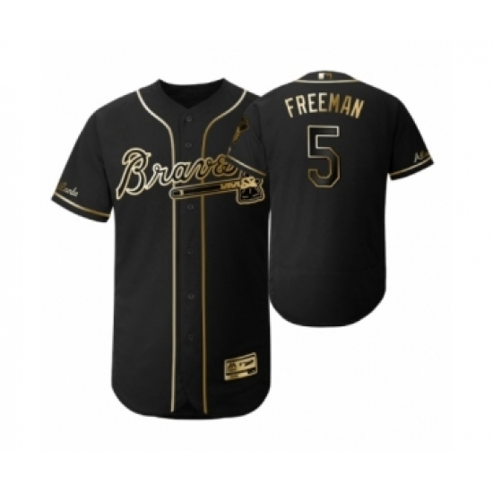 Men's 2019 Golden Edition Atlanta Braves Black #5 Freddie Freeman Flex Base Jersey