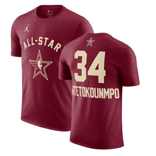Men's 2024 All-Star #34 Giannis Antetokounmpo Crimson T-Shirt
