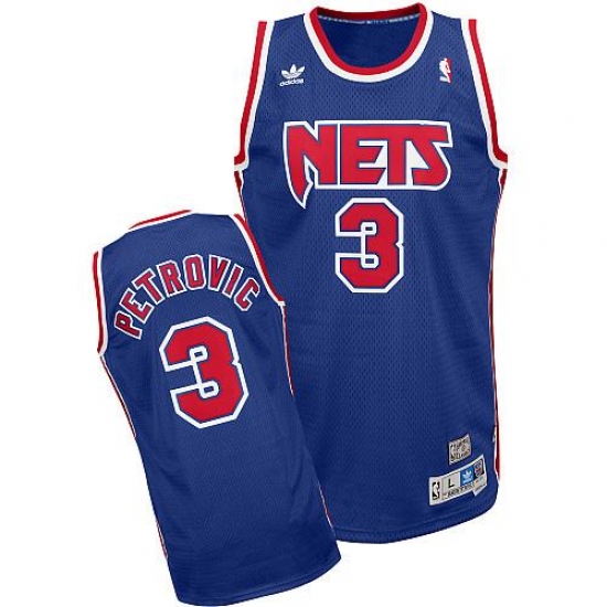 Men's Adidas Brooklyn Nets #3 Drazen Petrovic Swingman Blue Throwback NBA Jersey
