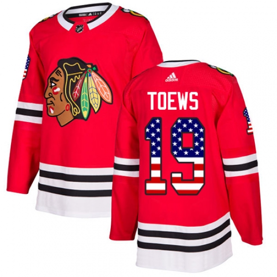 Home>NHL>Chicago Blackhawks>Jonathan Toews>Men's Adidas Chicago Blackhawks #19 Jonathan Toews Authentic Red USA Flag Fashion NHL Jersey