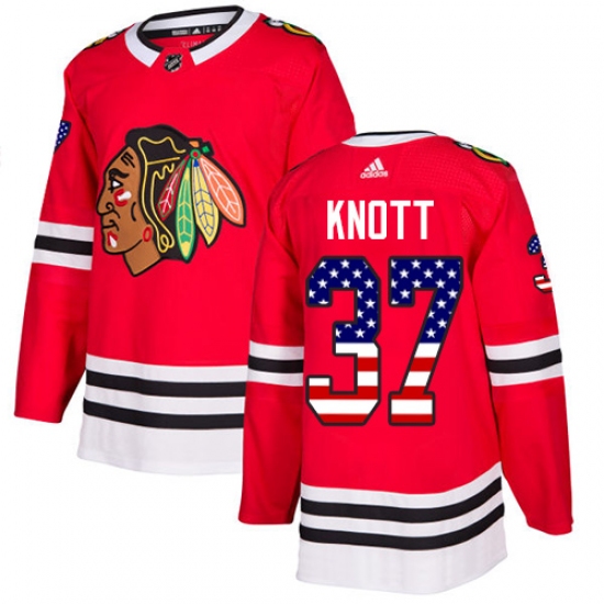 Home>NHL>Chicago Blackhawks>Graham Knott>Men's Adidas Chicago Blackhawks #37 Graham Knott Authentic Red USA Flag Fashion NHL Jersey