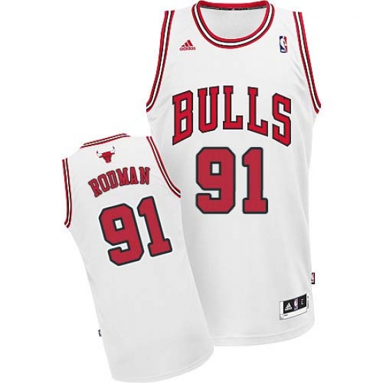 Men's Adidas Chicago Bulls #91 Dennis Rodman Swingman White Home NBA Jersey