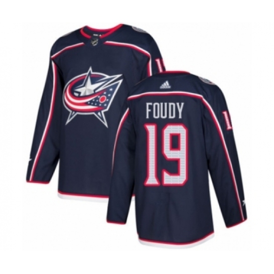 >Men's Adidas Columbus Blue Jackets #19 Liam Foudy Premier Navy Blue Home NHL Jersey