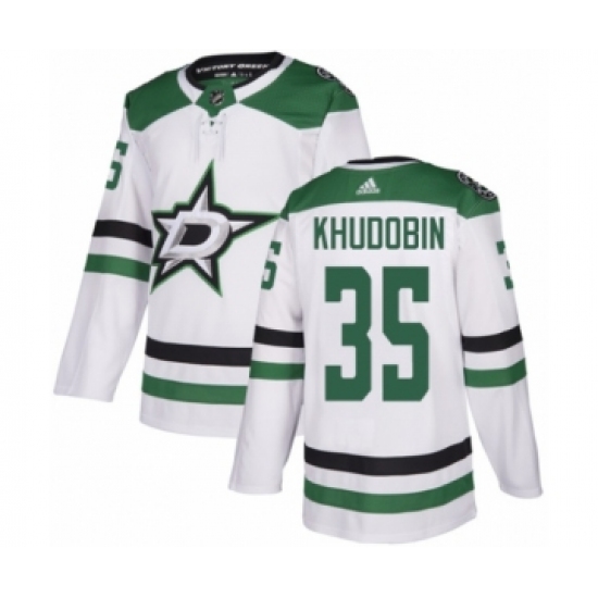 >Men's Adidas Dallas Stars #35 Anton Khudobin Authentic White Away NHL Jersey