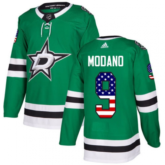 Home>NHL>Dallas Stars>Mike Modano>Men's Adidas Dallas Stars #9 Mike Modano Authentic Green USA Flag Fashion NHL Jersey
