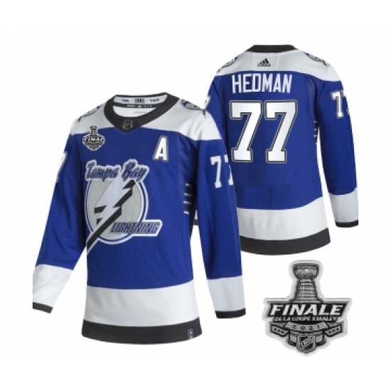 Men's Adidas Lightning #77 Victor Hedman Blue Authentic 2021 Stanley Cup Jersey