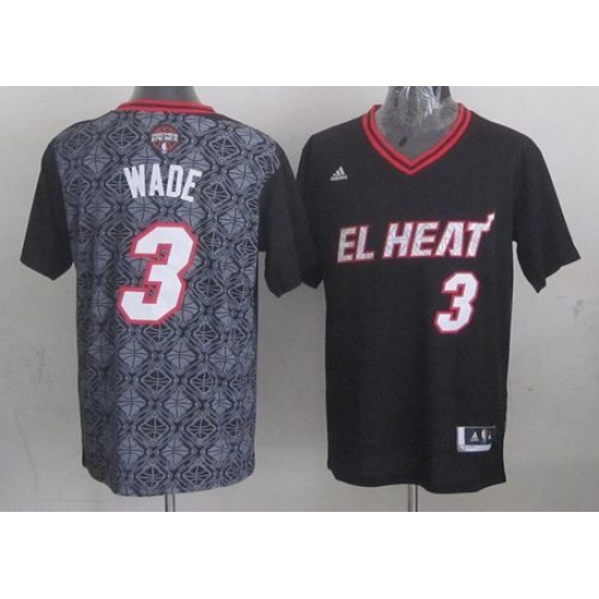 Men's Adidas Miami Heat #3 Dwyane Wade Swingman Black New Latin Nights NBA Jersey
