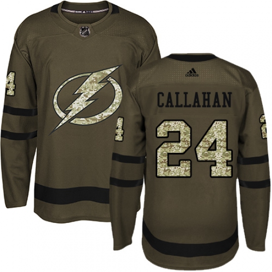 Home>NHL>Tampa Bay Lightning>Ryan Callahan>Men's Adidas Tampa Bay Lightning #24 Ryan Callahan Authentic Green Salute to Service NHL Jersey