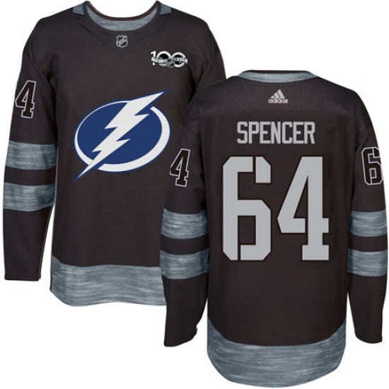 Home>NHL>Tampa Bay Lightning>Matthew Spencer>Men's Adidas Tampa Bay Lightning #64 Matthew Spencer Authentic Black 1917-2017 100th Anniversary NHL Jersey