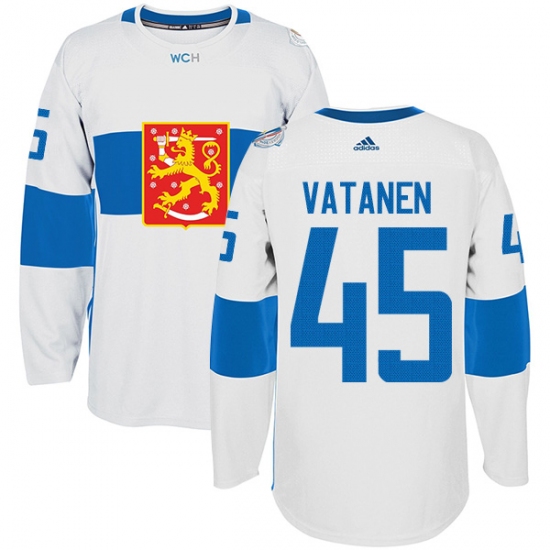 Men's Adidas Team Finland #45 Sami Vatanen Premier White Home 2016 World Cup of Hockey Jersey