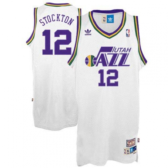 Home>NBA>Utah Jazz>John Stockton>Men's Adidas Utah Jazz #12 John Stockton Swingman White Throwback NBA Jersey